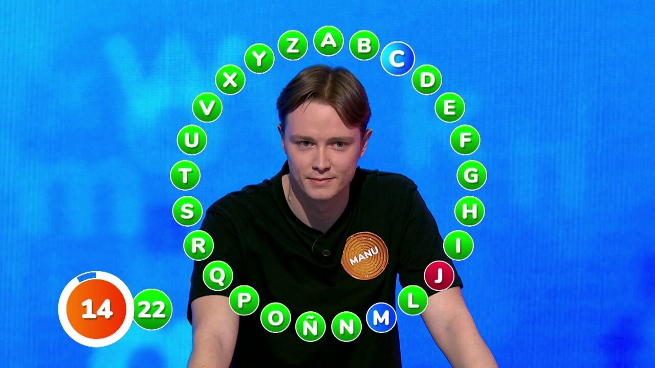 Tenía pinta de ser un Rosco igualado entre los concursantes hasta que Manu ha fallado en la J: ha respondido “jaculatoria” cuando se buscaba “jactancia”. Ni mucho menos se ha venido abajo y ha mantenido el ritmo, pero Rosa ha aprovechado para acelerar y terminar antes su primera vuelta. La ha completado con 20 aciertos y, cuando ha visto que su rival iba acercándose, ha sacado un as más.