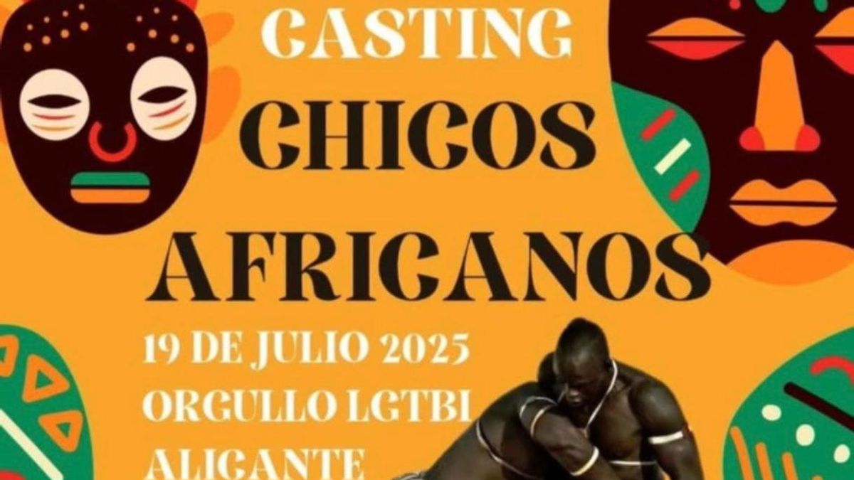 La convocatoria de un «casting de chicos africanos» para participar en la manifestación del Orgullo LGTBIQ+ de Alicante ha desatado una ola de críticas en redes sociales y ha obligado a la asociación organizadora, Alicante Entiende colectivo LGTBIQ+, a retirar el anuncio ante el rechazo generado. El cartel promocional, que ya ha sido retirado, incluía una imagen con máscaras tribales y una fotografía de dos hombres de raza negra practicando lucha tradicional sobre una bandera arcoíris. El texto del cartel convocaba a «10 chicos africanos» para formar parte de un «grupo de visibilidad de África» durante la protesta convocada por el colectivo LGTBIQ+ para el próximo 19 de julio de 2025 en Alicante, y especificaba que la participación «sería remunerada».