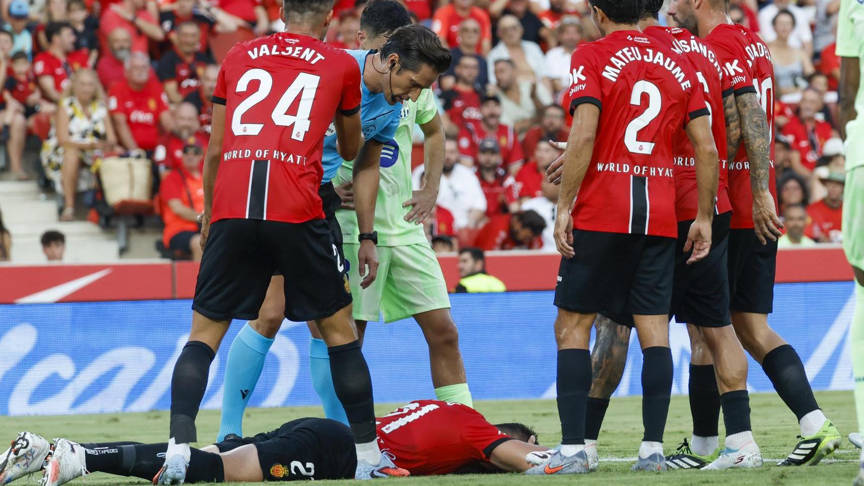 El capitán del Mallorca se fue al suelo conmocionado y José Luis Munuera Montero se llevó el silbato a la boca dispuesto a parar el partido para atender al jugador. Así lo dice el reglamento: si un jugador recibe un golpe en la cabeza hay que detener el juego de forma inmediata.