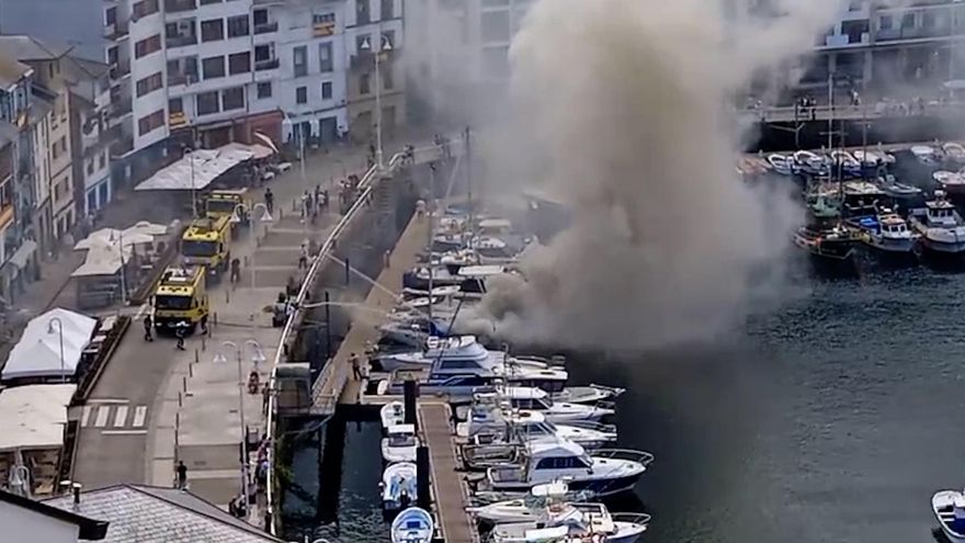 Incendio de una embarcación en el puerto de Luarca Fuente