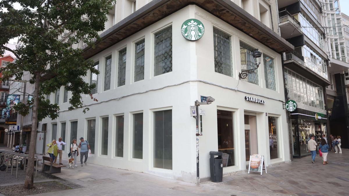 El Starbucks de calle Real de A Coruña ya luce su fachada sin andamios. Aunque la cafetería abrió sus puertas a inicios de agosto, todavía quedaban flecos pendientes ya que la fachada que da a la Rúa Nova permanecía cubierta.