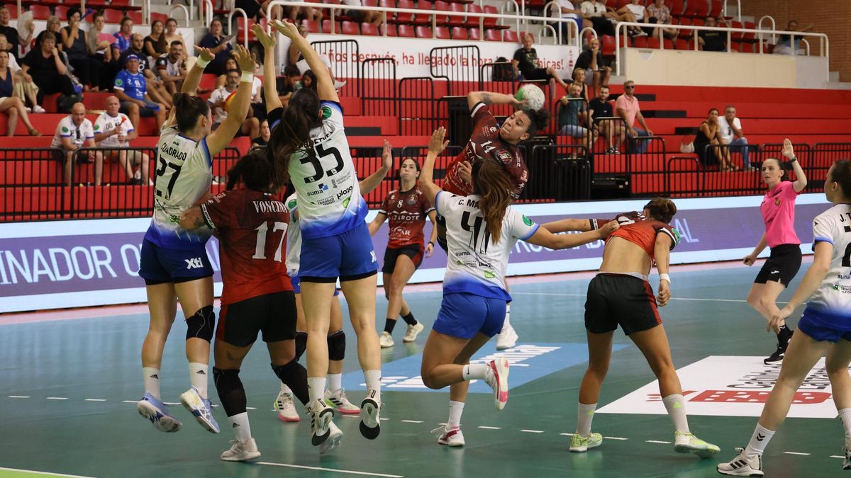 Por su parte, el Elda Prestigio volvió a sonreír ante los suyos en forma de triunfo ante el otro equipo de Lanzarote, que encontró manera de hacer daño a las alicantinas para ir cobrando rentas, incluso evitando Menucci tres siete metros favorables a las eldenses. Poco a poco, las locales encontraron en Malena Vallés y conexiones con el pivote la manera de revertir la desventaja y con ello llegar al descanso con un empate a 12 goles.