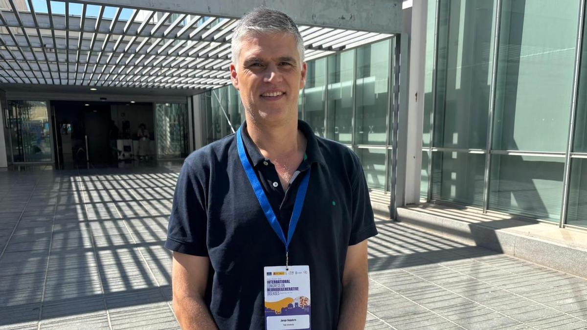 El investigador de Elche Jorge Sepulcre, en el centro de congresos de su ciudad, donde ha participado en el foro sobre enfermedades neurodegenerativas de la Fundación CIEN y la Fundación Reina Sofía / V. L. Deltell