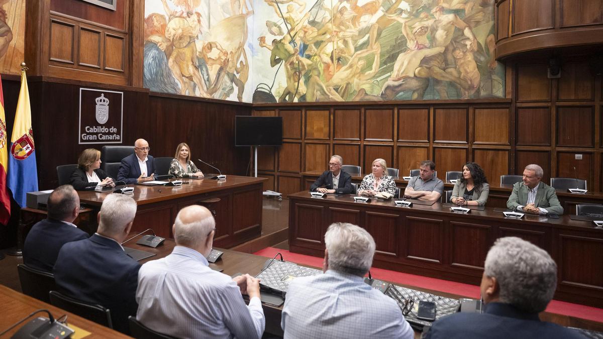 El presidente del Cabildo de Gran Canaria, Antonio Morales, recibió este miércoles a los alcaldes de los once municipios que integran la Mancomunidad de Ayuntamientos Gallegos del Camino Francés, con la que la Institución insular se ha hermanado en torno al Camino de Santiago, y a Reyes Martel, magistrada del Juzgado de Menores Número Uno de Las Palmas y presidenta de la asociación #UP2U Project-Depende de ti, que ha promovido la iniciativa que llevará a las autoridades gallegas a recorrer el Camino de Santiago de la Isla, que discurre entre Tunte y Gáldar, junto a un grupo de jóvenes vulnerables que caminarán en pos de su inclusión social.