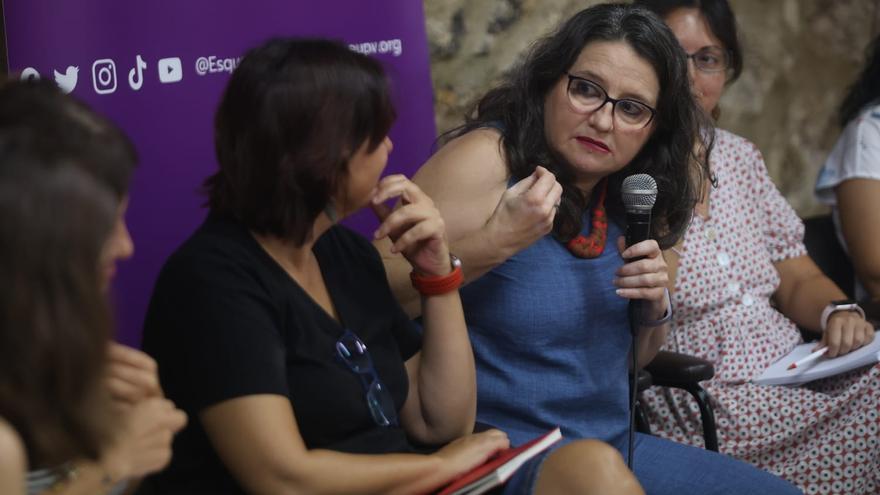 «Estamos aquí por la tesis doctoral de Rosa [Pérez Garijo], que cada uno vea después lo que quiera», ha dicho Mónica Oltra en su primera intervención en el encuentro organizado en la sede de EUPV en torno al feminismo para avanzar en derechos y «hacer país». Es una declaración a sabiendas de que todas las miradas están puestas sobre ella y su futuro político, con una virtual alianza de la izquierda valenciana en un nuevo bloque que tenga presencia en las elecciones de 2027.