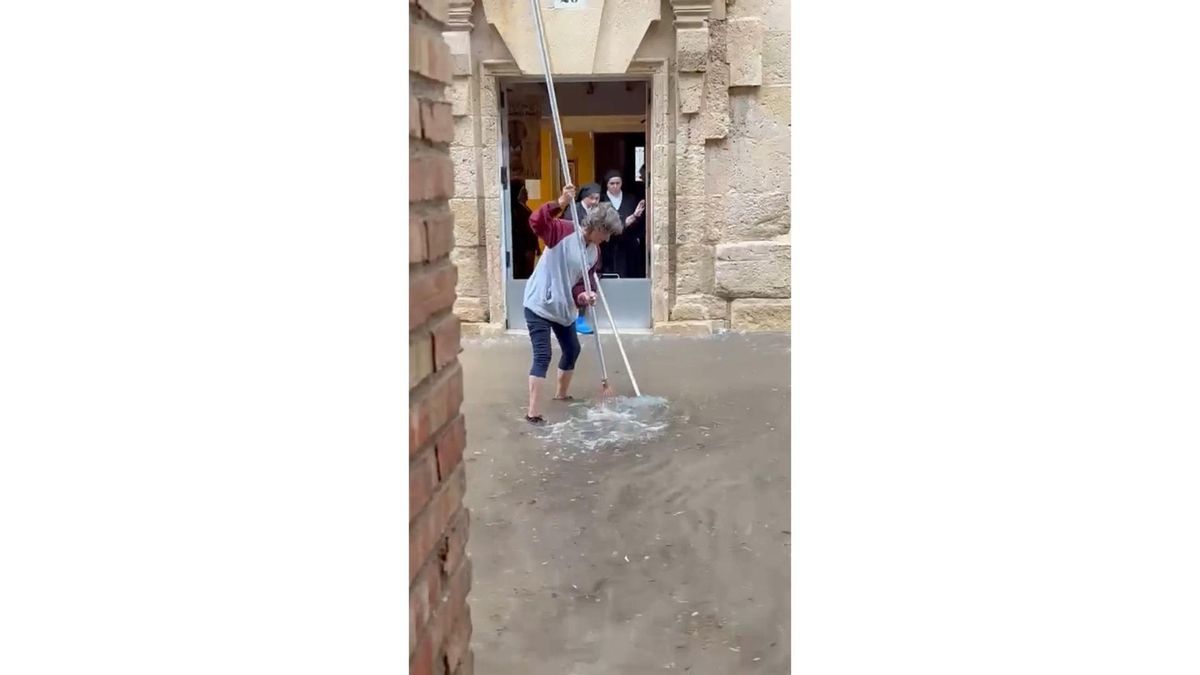 En medio de la emergencia, fueron los vecinos quienes actuaron para evitar que el agua alcanzara el interior del monasterio. «Estábamos a punto de que entrara el agua. Otras veces nosotras mismas hemos tenido que intentar desatascar los desagües con palos largos, como pértigas, pero esta vez han sido los vecinos quienes se han lanzado a ayudarnos», relata sor Irene Estadella, vicaria de la comunidad. «Especialmente la vecina de enfrente se puso a quitar la broza que se acumulaba en el desagüe, aunque por mucho que se limpie, el agua siempre arrastra más restos de los que se pueden retirar», señala.