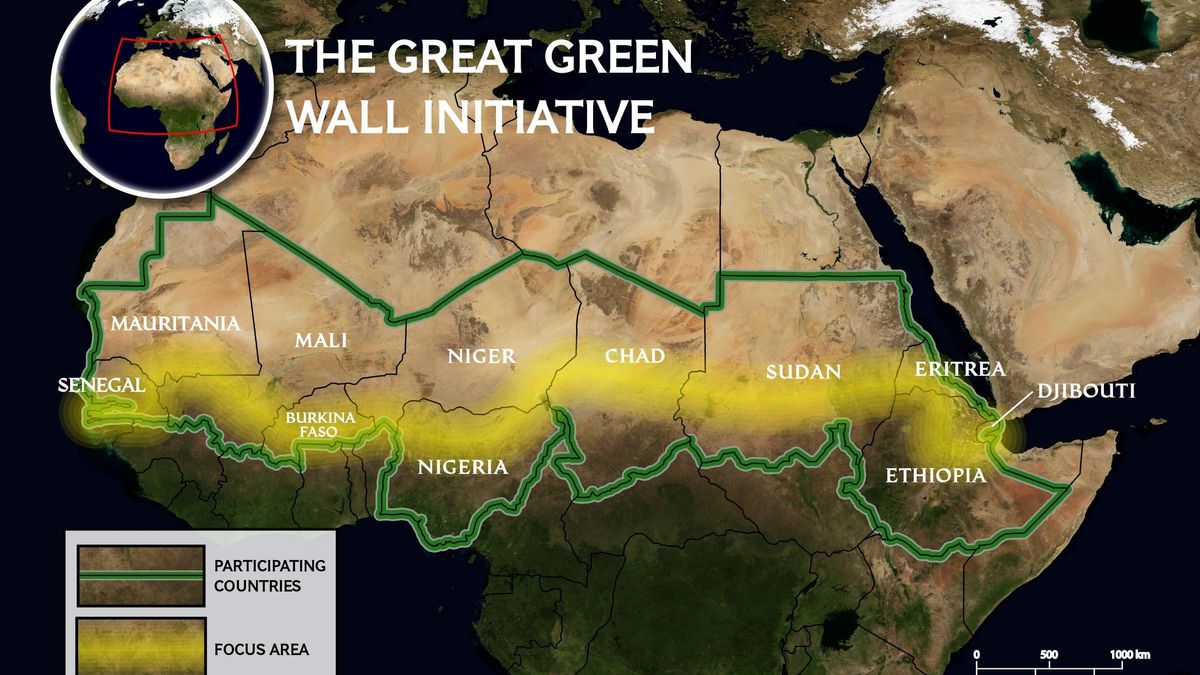 El proyecto de la Gran Muralla Verde de África comenzó como un ambicioso plan para construir una franja de árboles de 15 kilómetros de anchura y 6.000 kilómetros de longitud en el norte de África. La Unión Africana lanzó el proyecto en 2007 con la intención de que los árboles atravesaran 11 países del Sahel, restaurando 100 millones de hectáreas de tierra desde Senegal hasta Yibuti y Etiopía.