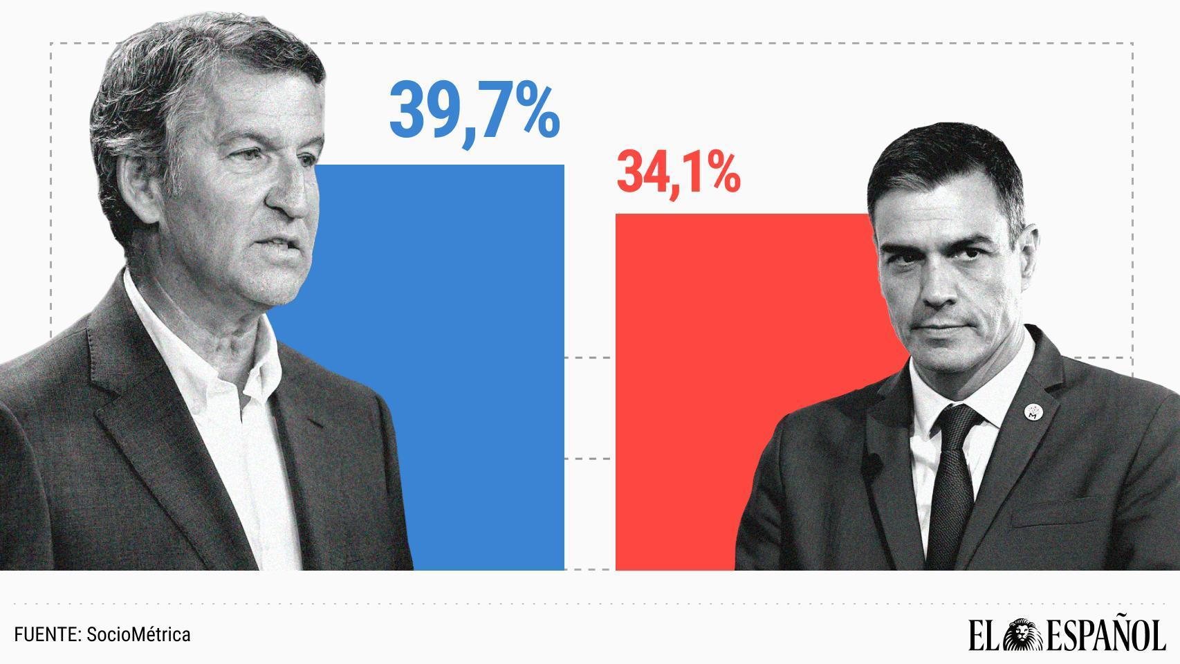 Según la nueva encuesta de SocioMétrica para EL ESPAÑOL, el 20,1% de los españoles dice que prefiere a Feijóo como presidente del Gobierno.