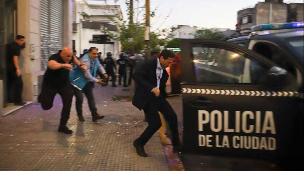El presidente llegó al club a las 4 de la tarde y se marchó sobre las 7 en medio de los disturbios de la policía. «Miren la imagen de cómo se va a ir, como una rata. No tiene derecho de hacerle esto al Ciclón. Si tienes un poco de amor por San Lorenzo te tienes que ir», pedían los comentaristas de TyC Sports en su retransmisión.