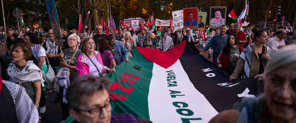 La huelga general de este miércoles 15 de octubre convocada en solidaridad y apoyo al pueblo de Gaza, cuando ya se está aplicando el plan de paz de Estados Unidos, ha teñido de los colores de la bandera palestina multitud de ciudades en toda España, desde Madrid a Barcelona pasando por Palma de Mallorca o Valencia.