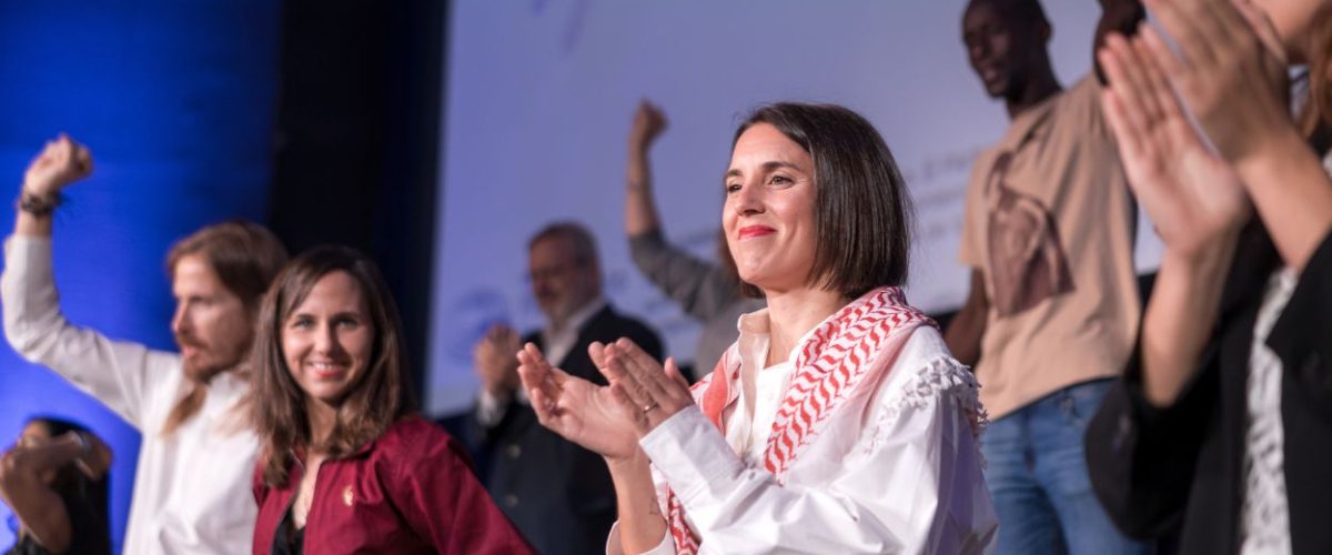 “Basta de usar a la extrema derecha como excusa para no avanzar en derechos para evitar que la gente tenga una vida de mierda”. Esta ha sido una de las consignas que ha lanzado la dirigente de Podemos y candidata morada a la Presidencia del Gobierno, Irene Montero, al Partido Socialista durante su intervención en la clausura del acto, bajo la atenta mirada de la formación comunitaria La Alianza de la Izquierda Europea. Su compañera, Ione Belarra, ha remado en la misma dirección, defendiendo que el freno a las derechas se consigue al construir una respuesta bajo la óptica de las políticas de Podemos. De hecho, no sin malicia, apuntaló que fueron éstas las que guiaron a Sánchez y a la vicepresidenta segunda, Yolanda Díaz, en la campaña de las elecciones generales de julio de 2023. Asimismo, han abierto las puertas de la formación al rearme con la incorporación de perfiles que aspiren a contribuir a un proyecto feminista, antifascista y antirracista.