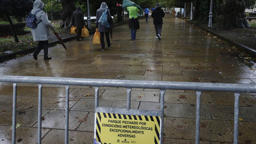 La borrasca de alto impacto Benjamín activa en Galicia alertas por lluvias y fuertes rachas de viento. El Concello de Santiago ha ordenado esta mañana el cierre de todos los parques y espacios verdes del municipio.