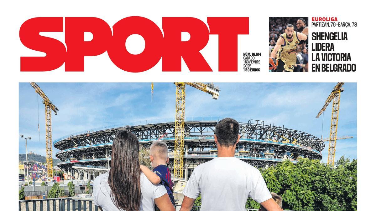 El regreso al Spotify Camp Nou será una realidad la próxima semana. Este es el tema de apertura de la portada de SPORT de este primer día de noviembre. Será el viernes que viene por la mañana, con ocasión de un entrenamiento del equipo de Hansi Flick. 23.000 espectadores, que corresponden al aforo permitido entre tribuna y gol sur, podrán asistir al primer acto que se realizará en el estadio que se está remodelando al completo.