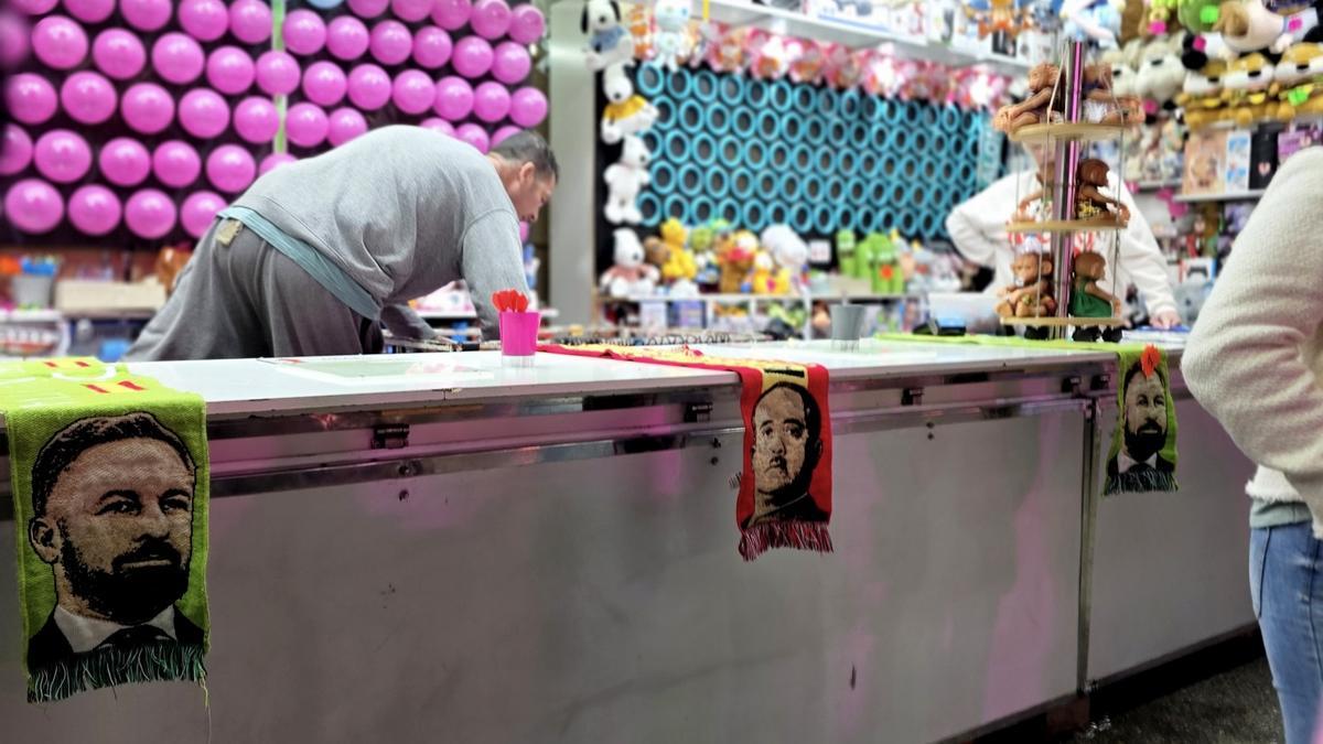 Un puesto de juegos de puntería en la feria de atracciones de Castelló cuenta entre sus premios con bufandas que muestran el rostro del dictador Francisco Franco junto al lema “Arriba España”, lo que ha suscitado cierta polémica entre los asistentes al recinto lúdico.