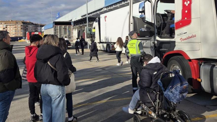 Estudiantes de primer y segundo curso del IES León Felipe de Benavente del Grado Superior en Transporte y Logística han tenido esta semana una actividad práctica en la zona del CTB, con agentes de Tráfico de la Guardia Civil de Benavente.
