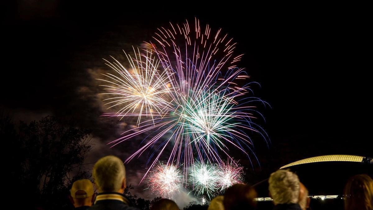 Córvidos volando sobre Berlín durante un espectáculo de fuegos artificiales. / Westley Hennigh Palermo