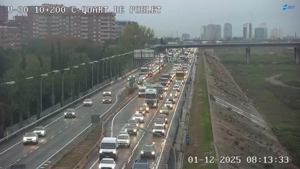 El tráfico habitual de la carretera V-30 acumula este lunes 6,5 kilómetros de retenciones desde Mislata hasta Forn d’Alcedo en dirección hacia el puerto.