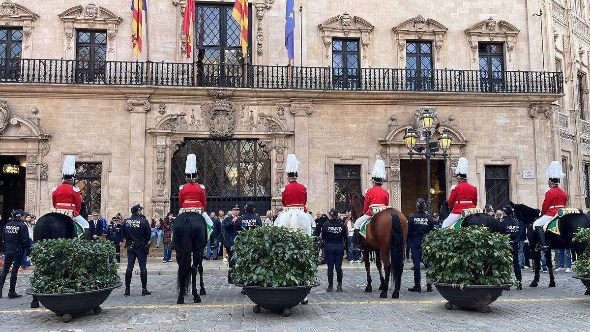 La Policía Local de Palma ha conmemorado este jueves el 150 aniversario de su histórica unidad Montada, considerada la más antigua de España. El acto, celebrado en la fachada y en el interior del Ajuntament de Palma, ha reunido a los actuales integrantes de la sección, a agentes jubilados, familiares y representantes institucionales, entre ellos el alcalde, Jaime Martínez.