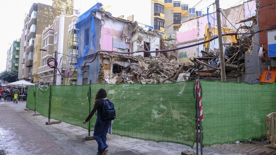 El inmueble derribado responde al número 25 de la calle Ripoche, una vivienda construida hace casi un siglo, en 1930, en la que se estaban desarrollando trabajos de demolición para la construcción del hotel con 48 habitaciones. La Policía Local acordonó la zona para evitar el paso de viandantes.
