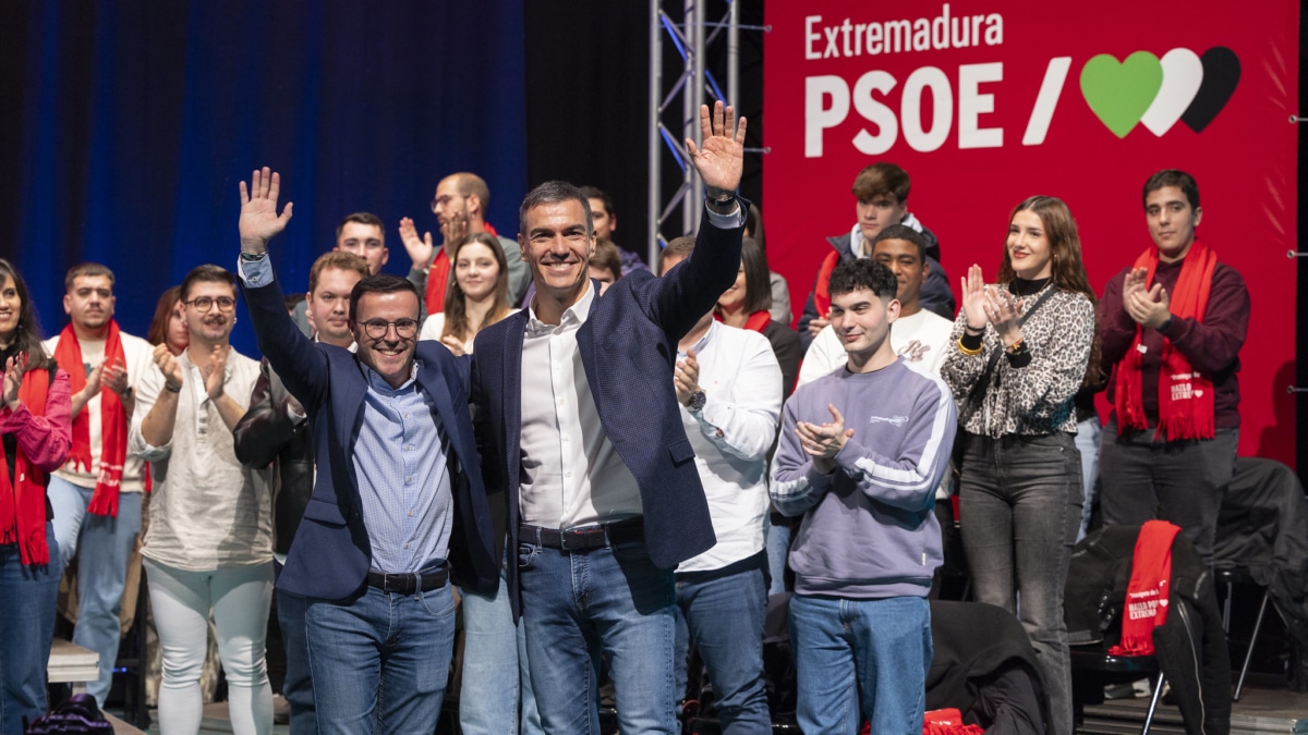 El juicio que el barón regional deberá afrontar en mayo ha estado muy presente en la campaña del 21-D. Él mismo lo ha mentado en estos 15 días para insistir a los suyos en que no se doblará, para que no se vengan abajo. Y este viernes Sánchez lo citó indirectamente, y por primera vez, para respaldar a su candidato: «Con bulos y zancadillas han intentado que perdieras la calma y no lo han conseguido. Vas a ganarles con el voto de los extremeños. Vas a ser un gran presidente, como lo fueron Juan Carlos Rodríguez Ibarra y nuestro añorado Guillermo Fernández Vara [fallecido el pasado 5 de octubre], y lo vas a ser porque siempre pondrás por delante Extremadura, como hiciste con Villanueva de la Serena». «No como María Guardiola», contrapuso el jefe del Ejecutivo, porque ella convocó anticipadamente las autonómicas porque «se lo ordenó [Alberto Núñez] Feijóo desde Madrid, y no va a debates electorales [no acudió al del jueves por la noche en RTVE] como tampoco fue Feijóo» a la corporación pública en las generales de 2023.