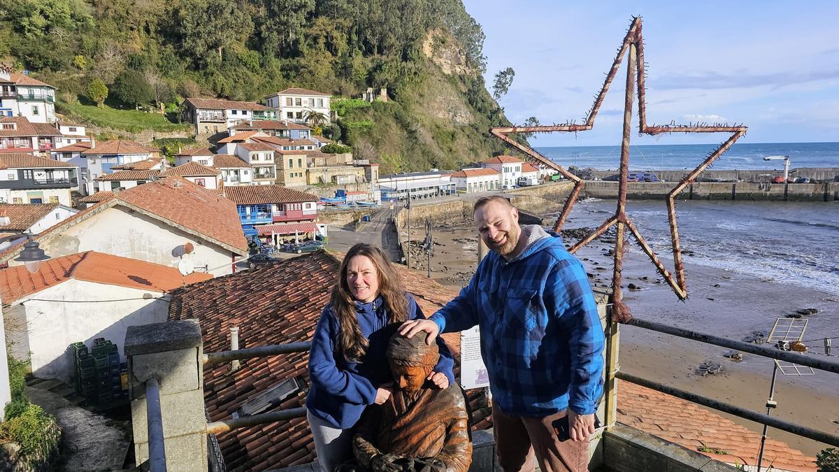 Marcos Sevillano y Miguel Mangas, de Salamanca, en un rincón decorado de Tazones. / V. Alonso