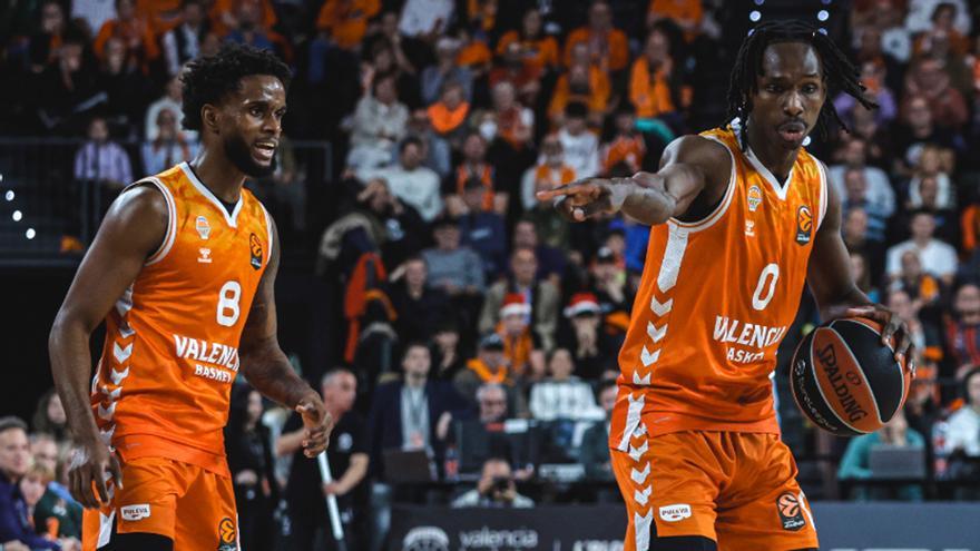 Kameron Taylor [Valencia Basket] falla el triple. El rebote ofensivo es para Omari Moore