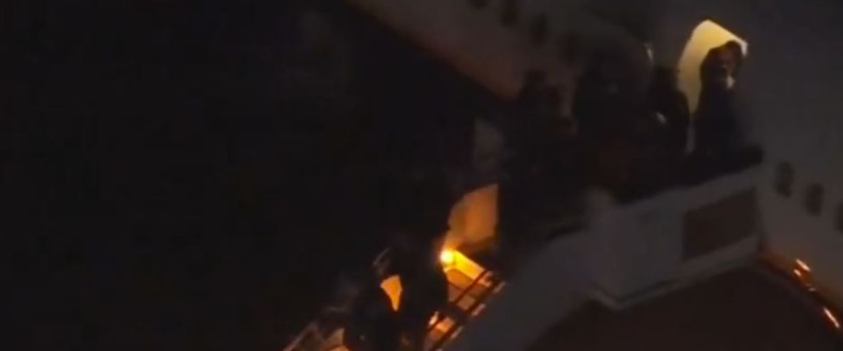 Hace un momento cuando Nicolás Maduro, acompañado de su esposa, descendió del avión escoltado por agentes de seguridad, en una operación que marcó el inicio de su traslado al Brooklyn Detention Center, en NY. pic.twitter.com/AiQXAKPpBF