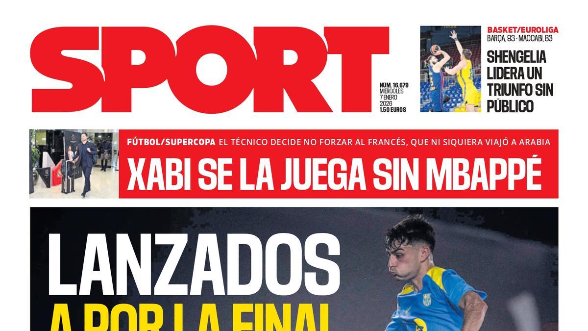 La portada de SPORT de hoy jueves, 7 de enero de 2026 es: «LANZADOS A POR LA FINAL». La gran noticia a última hora de la noche ha sido la marcha de Ter Stegen de la concentración en Arabia, en una noticia avanzada por SPORT que confirmó el Barça con un comunicado oficial sobre su situación.