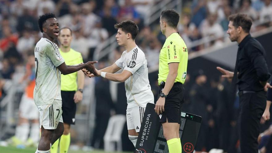 “Te va a echar Florentino. Acordate, te va a echar Florentino, acordate de lo que te digo”, chilló Simeone. No a su colega, sino a Vinicius, que corría por la banda. Antes de que pueda o no suceder, Alonso volvió a sustituir al brasileño, que sumó el decimoquinto partido sin marcar, y sin presionar en la fase defensiva, como le exige. Ganó el Madrid, sin embargo, el derecho a recuperar el título que perdió el año pasado, cuando acudió pletórico y eufórico, marcó Mbappé y la autocomplacencia le condujo a embolsarse una tunda de cinco goles de un Barça que ya los ha marcado en la semifinal sobre el Athletic Club.