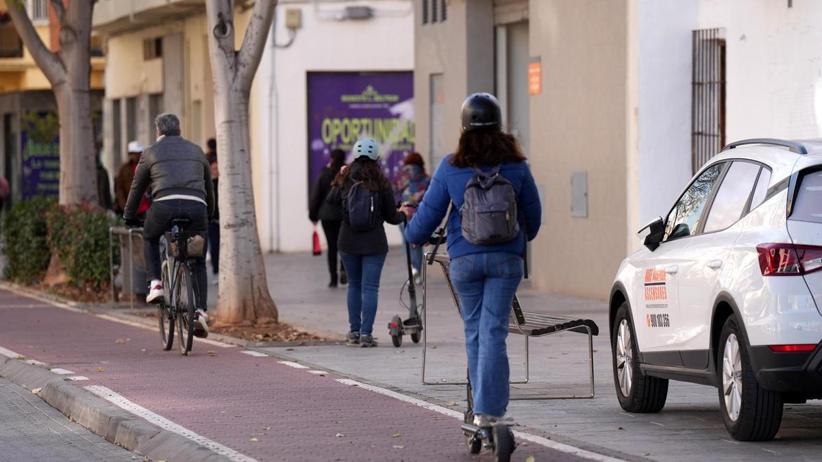 Una usuaria de patinete circula por un carril bici en Castelló. / GABRIEL UTIEL BLANCO