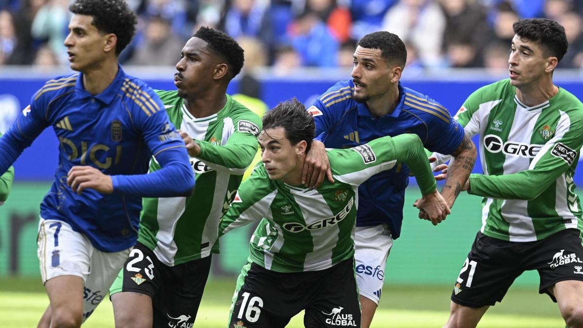 Mientras el Oviedo lo intentaba con más alma que fútbol, el Betis seguía amenazando al espacio y Riquelme tuvo el gol del triunfo a centro de Bellerín; el resultado no se movió y el 1-1 final mantiene a los azules en el pozo, mientras que los verdiblancos no se acercan al quinto puesto.