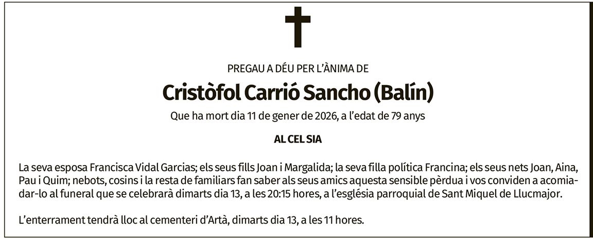 Inicio Político Cristòfol Carrió Sancho Político Cristòfol Carrió Sancho Por Muhammad Ali - enero 12, 2026 26 0 FacebookTwitterPinterestWhatsApp Cristòfol Carrió Sancho Fuente Artículos relacionadosMás del autor Montecruz (05/02/26) – La Provincia El lapsus de Feijóo en su visita a Binéfar: confunde ocho veces el nombre de la empresa El lapsus de Feijóo en su visita a Binéfar: confunde ocho veces el nombre de la empresa Montecruz (05/02/26) – La Provincia febrero 5, 2026 El lapsus de Feijóo en su visita a Binéfar: confunde ocho... febrero 5, 2026 algo más que un horno tradicional febrero 4, 2026 Paloma San Basilio y Natalia también actuarán como invitadas en el... febrero 4, 2026 El derbi canario muestra las credenciales para creer en la resurrección... febrero 4, 2026 El lapsus de Feijóo en su visita a Binéfar: confunde ocho... febrero 4, 2026 Sánchez planea viajar a China por cuarto año consecutivo en medio... febrero 4, 2026 El lapsus de Feijóo en su visita a Binéfar: confunde ocho... febrero 4, 2026 ESTADOS UNIDOS | Trump dice que el líder supremo iraní «debería... febrero 4, 2026 si tu empresa te obliga a llevar esto en tu móvil,... febrero 4, 2026 ESTADOS UNIDOS | Trump dice que el líder supremo iraní «debería... febrero 4, 2026 ESTADOS UNIDOS | Trump dice que el líder supremo iraní «debería... febrero 4, 2026 Alphabet bate previsiones con sus resultados y prevé un aumento del... febrero 4, 2026 ESTADOS UNIDOS | Trump dice que el líder supremo iraní «debería... febrero 4, 2026 Juanma Castaño alucina con el penalti pitado en el Alavés febrero 4, 2026 Político20988Deportes13485Mundo11559Nacional10849International9670Noticias9344Negocio8448