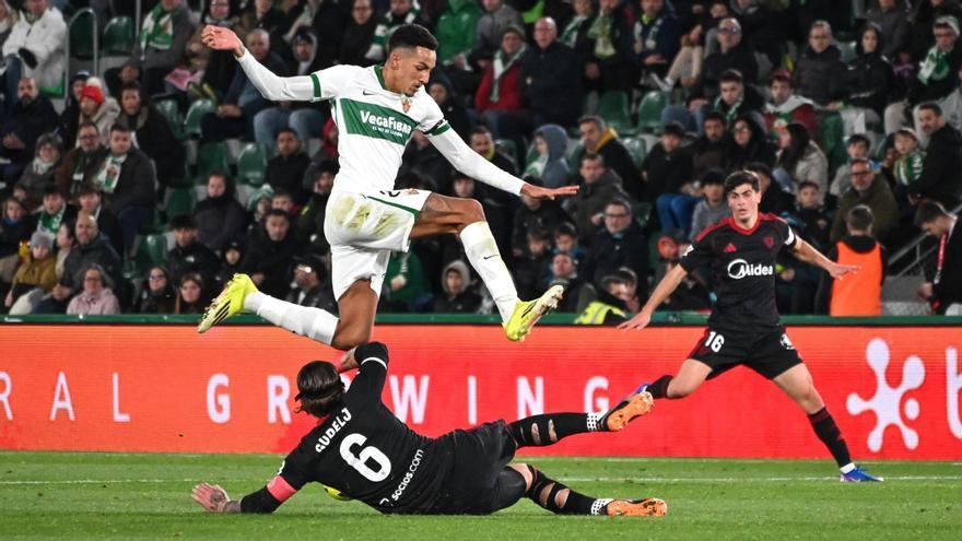 No fue así. El Elche bajó varios escalones con las decisiones de Sarabia para cerrar el encuentro. No se solidificó atrás y se petrificó en ataque, desapareciendo cualquier atisbo de peligro. Dos avisos, el segundo larguero y una nueva intervención de Peña, fueron el preludio de lo que estaba por venir. Regresó la locura, el descontrol.