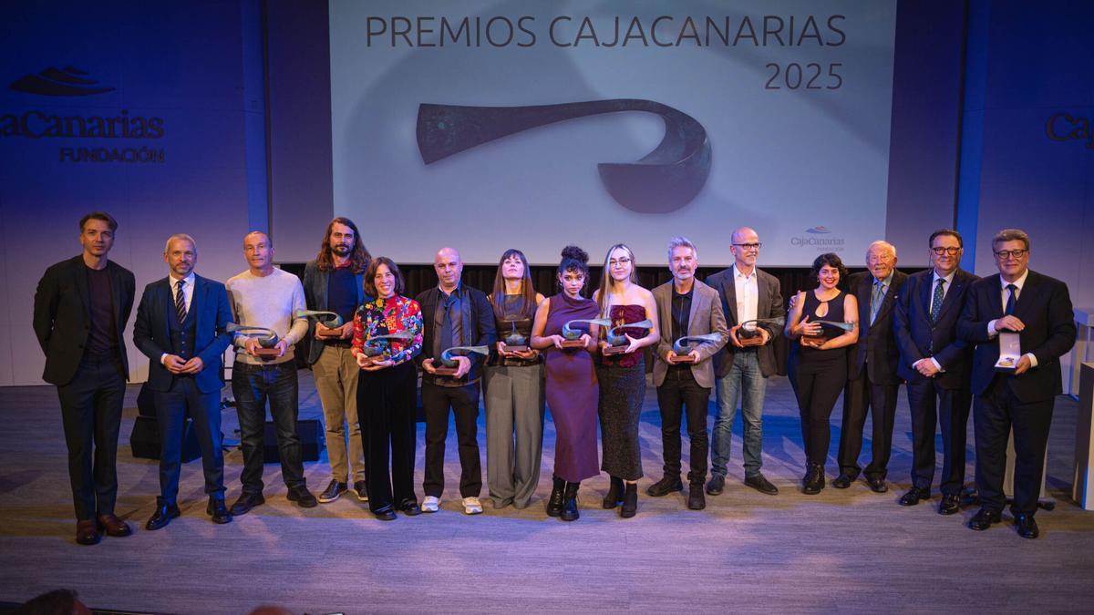 El tiempo es igual para todos, pero lo que hacemos con él marca la diferencia. Con un esperanzador vídeo inicial en el que aparecían referentes de la cultura de Canarias como Carlos Nicanor, Maribel Nazco, Carlos Pedrós o Jonatán Rodríguez, dio comienzo ayer la gala de entrega de los Premios CajaCanarias 2025, con la que el Espacio Cultural de la Fundación CajaCanarias en Santa Cruz de Tenerife se vistió de gala. Una decena de representantes de las diferentes artes fueron reconocidos por sus propuestas únicas e innovadoras, así como por su contribución a la cultura y la ciencia isleña. A la gala acudieron no solo los finalistas de las diferentes categorías, sino también autoridades y personalidades canarias, que celebraron esta fiesta de la creación cultural.