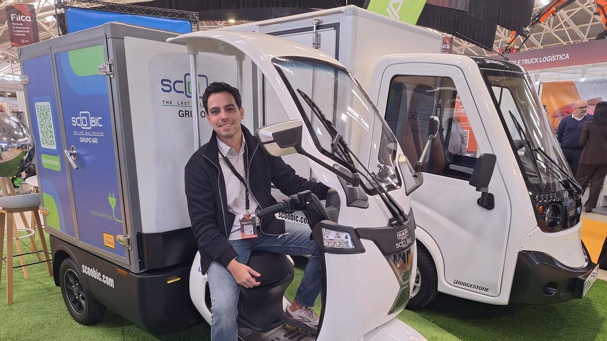 Así es. Presentamos en esta Feria de la Innovación Logística de Canarias vehículos de reparto, inicialmente pensados para el trayecto de última milla. Todos son eléctricos y nos ha sorprendido mucho porque también hemos comenzado a vender a hoteles o a la restauración. Inicialmente estaban pensados para empresas de logística, mensajería y reparto, pero la verdad que tanto restaurantes como hoteles lo tienen para labores internas, el cambio de ropa o llevar comida a domicilio, incluso nos lo ha pedido un fontanero, el cliente más insospechado también es cliente potencial para Scoobic.