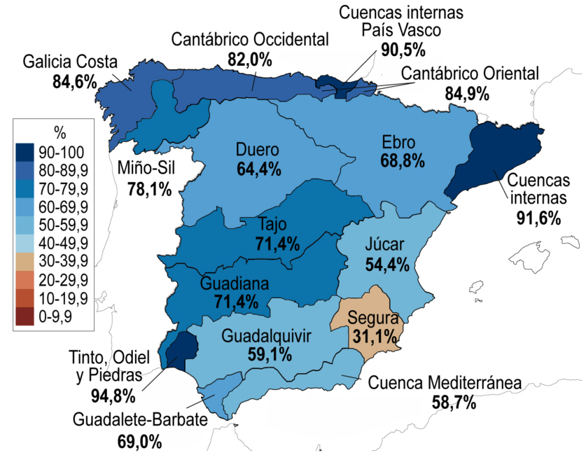 Este excepcional comportamiento hidrológico tiene su origen en el segundo mes de enero más lluvioso del siglo XXI -solo superado por el de 2001-, en el que las precipitaciones fueron un 85% superiores al promedio del periodo 1991-2020. Según el último boletín hidrológico publicado por el Ministerio para la Transición Ecológica, la reserva hídrica peninsular alcanza los 37.706 hectómetros cúbicos (hm³), tras aumentar en 4.516 hm³ en tan solo siete días, un 8,1% de la capacidad total de los embalses.