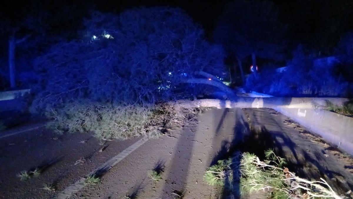 La caída de un pino obligó anoche a cortar el tráfico en la salida sur del Port de Sagunt, a la altura del túnel inundable.