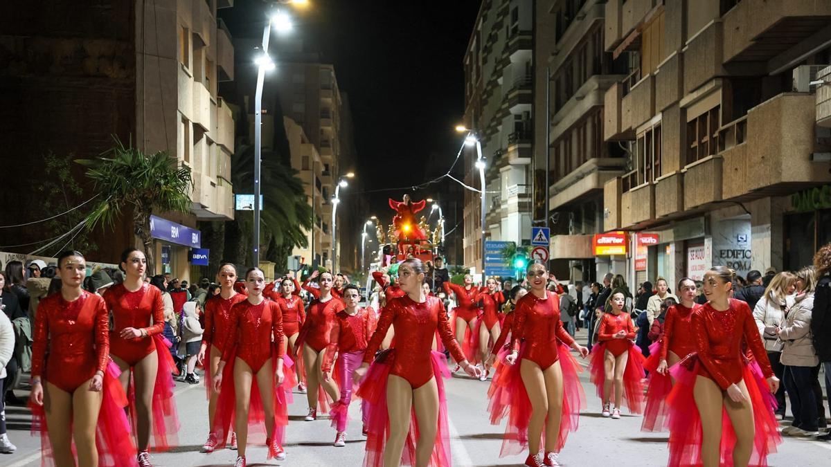 Las probabilidades de lluvia no conseguían imponerse al Carnaval de Lorca, que se celebraba más temprano que nunca para esquivar al mal tiempo. Gracias a esta medida, consensuada por Ayuntamiento y comparsas, la Ciudad del Sol se convertía en una fiesta en la que 1.250 figurantes recorrían las principales calles en un derroche de alegría y color.