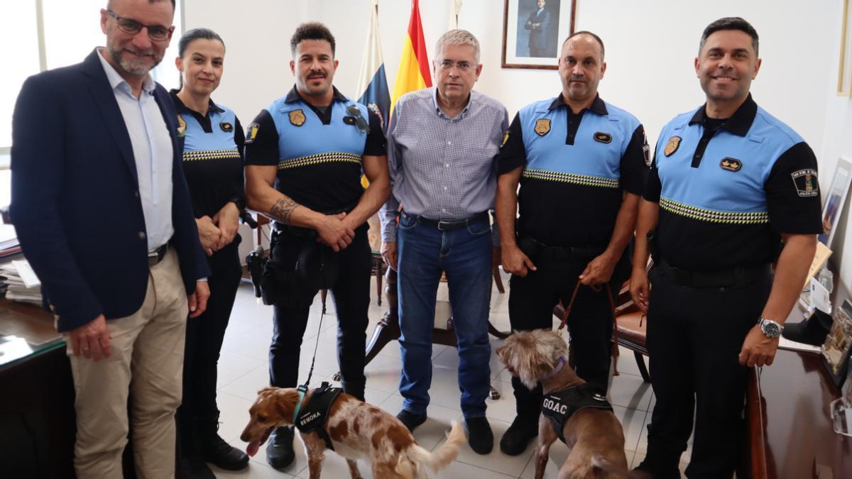 La presentación oficial tuvo lugar este miércoles con la presencia del alcalde, Marco Aurelio Pérez; el concejal de Seguridad y Emergencias, José Carlos Álamo Ojeda; y los mandos policiales responsables de la unidad y del área de Bienestar Animal, junto al agente guía de Moka.