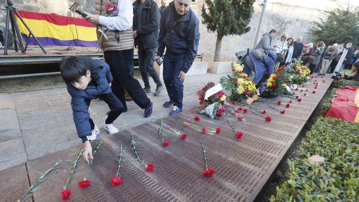 Unas 200 personas han asistido al sentido homenaje celebrado en el cementerio de Palma. Representantes de los partidos de izquierda, de los sindicatos, de la sociedad civil e intelectuales han presenciado el acto en memoria de las víctimas del franquismo. Entre las autoridades se encontraban la Secretaria de Estado de Turismo, Rosario Sánchez; el alcalde de Inca, Virgilio Moreno; el senador y exedil José Hila; el expresidente del Parlament, Vicenç Thomàs; la diputada Patricia Gómez, todos ellos del PSIB; así como Lluís Apesteguia y Neus Truyol, de Més per Mallorca; o el exconseller de Podemos, Jesús Jurado.