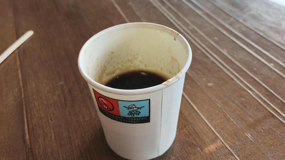 A pesar de pedir un expreso «muy cortito», lo que me llegó, por dos euros, fue un desagradable líquido con sabor a lejía, en un vasito de papel y cuyo contenido casi llegaba hasta arriba. El vuelo salía en unos minutos, y me quedé sin tiempo para intentar dialogar con la persona que me preparó eso. Dejé el café entero, hasta arriba, y me fui con mal sabor de boca, literalmente, al avión. Es como si me hubiera acercado a esa barra y les hubiera regalado dos euros a cambio de recibir un tortazo.