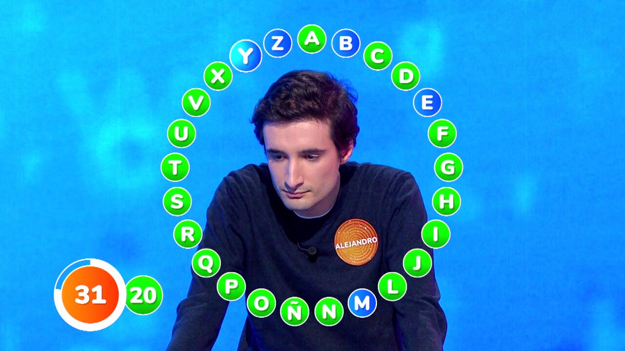 El error ha ocurrido entre un buen arranque de cinco aciertos y un gran turno de ocho, mientras que a Alejandro le ha costado un poco más coger el ritmo. Sin embargo, después, ha acelerado: tras enlazar seis respuestas, ha hecho un jugadón de once letras consecutivas. Instantes después, ha completado la primera vuelta con 20 aciertos y ha sumado otros dos.