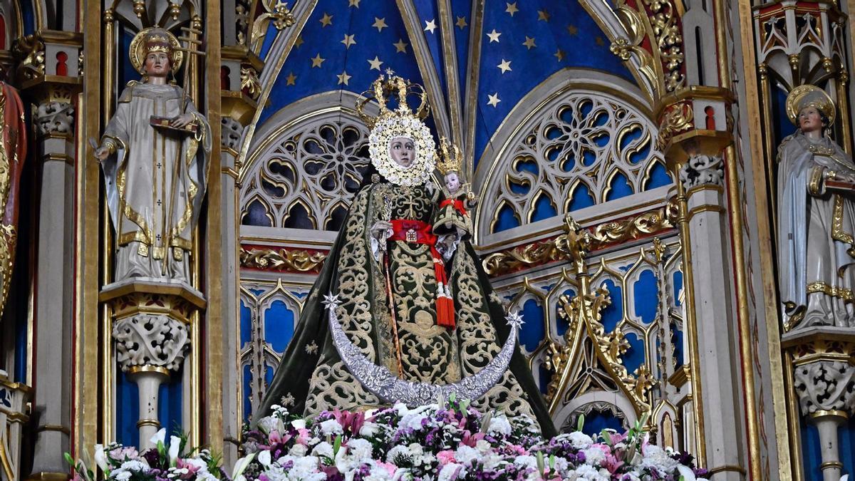 El repique de las campanas a diez minutos de las doce menos cuarto, hora oficial del inicio de la santa misa, ya daban alerta a fieles y turistas de la plaza Cardenal Belluga de que la de este domingo no era una eucaristía más. En la mañana de este domingo, se celebraba la misa del 99 aniversario de la coronación de Nuestra Señora de la Fuensanta, además de la lectura del decreto jubilar.