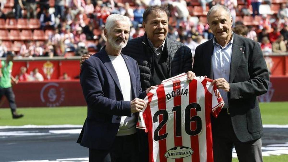 «El pibe, el Mazinger Z», relató el periodista gastronómico, David Fernández-Prada, dando paso al zaguero argentino. Con 216 partidos como rojiblanco, Doria es el cuarto extranjero con más encuentros con el Sporting y miembro de la generación dorada de los 70 y 80, aquella que quedó subcampeona de Liga y de Copa del Rey, en dos ocasiones. Los más veteranos del lugar, si entrecerraban los ojos, todavía podían ver el trío Doria-Joaquín-Redondo como en sus grandes años. Sin olvidarse de Ferrero, que disfrutó del encuentro junto a su compatriota. Con los sentimientos a flor de piel, el central argentino se guardó unos minutos para observar alrededor y agradecer el sincero cariño de la afición.