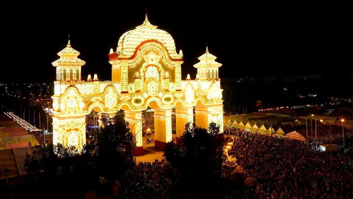 Las más de 28.000 bombillas leds rompieron en luz sobre una portada que, en esta edición, fusiona el Pabellón de Portugal de la Exposición Iberoamericana de 1929 con el cenador de Carlos V, situado en el Real Alcázar. Su autor es Davide Gambini, un italiano afincado en Sevilla, que -por segunda vez- firma la puerta de entrada al Real tras el éxito de su diseño para la edición de 2024. Para esta Feria de 2026, la estructura se alza sobre 30.537 metros de tubo, más de 6000 piezas de carpintería y 3.777 m² de panelado de una portada que mide 40 metros ancho, 40 de alto y los 5,70 de profundidad. «La clave es que tenga el gusto de la fiesta, no el mío», señalaba el arquitecto en una entrevista a El Correo de Andalucía.