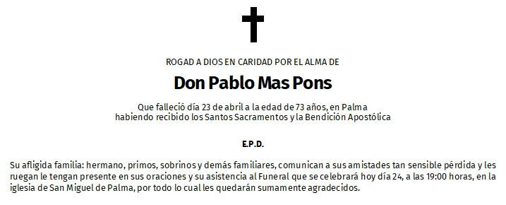 Inicio Político Don Pablo Mas Pons Político Don Pablo Mas Pons Por Muhammad Ali - abril 24, 2026 7 0 FacebookTwitterPinterestWhatsApp Don Pablo Mas Pons Fuente Artículos relacionadosMás del autor Una proposta singular Estados Unidos detiene al soldado que ganó 400.000 dólares al apostar por el secuestro de Maduro JUICIO KITCHEN | La ‘Operación Cataluña’ se asoma en el juicio Kitchen al admitir Cospedal que Villarejo quería ser «recompensado» por sus «servicios al... El Ibex apunta al rojo tras la extensión del alto el... abril 24, 2026 AWA FAM | «Mi lema de vida es tener paciencia y... abril 24, 2026 Una proposta singular abril 24, 2026 El ataque de Albany a Ibiza provoca el primer acercamiento de... abril 24, 2026 Horacio Calcaterra sobre Universitario en el Torneo Apertura 2026: «Matemáticamente estamos... abril 24, 2026 Estados Unidos detiene al soldado que ganó 400.000 dólares al apostar... abril 24, 2026 Estados Unidos detiene al soldado que ganó 400.000 dólares al apostar... abril 24, 2026 Estados Unidos detiene al soldado que ganó 400.000 dólares al apostar... abril 24, 2026 Estados Unidos detiene al soldado que ganó 400.000 dólares al apostar... abril 24, 2026 Un Real Madrid con chanclas y toalla visita al Betis en... abril 24, 2026 La APM celebra un coloquio sobre libertad de expresión con periodistas... abril 24, 2026 JUICIO KITCHEN | La ‘Operación Cataluña’ se asoma en el juicio... abril 24, 2026 Illa arrebata al separatismo la ‘prioridad nacional’ del catalán como requisito... abril 24, 2026 Las becas como ascensor social abril 24, 2026 Las lesiones y Lamine Yamal: Crucemos los dedos abril 24, 2026 Político26330Deportes16890Mundo14517Nacional13590International12112Noticias11732Negocio10607