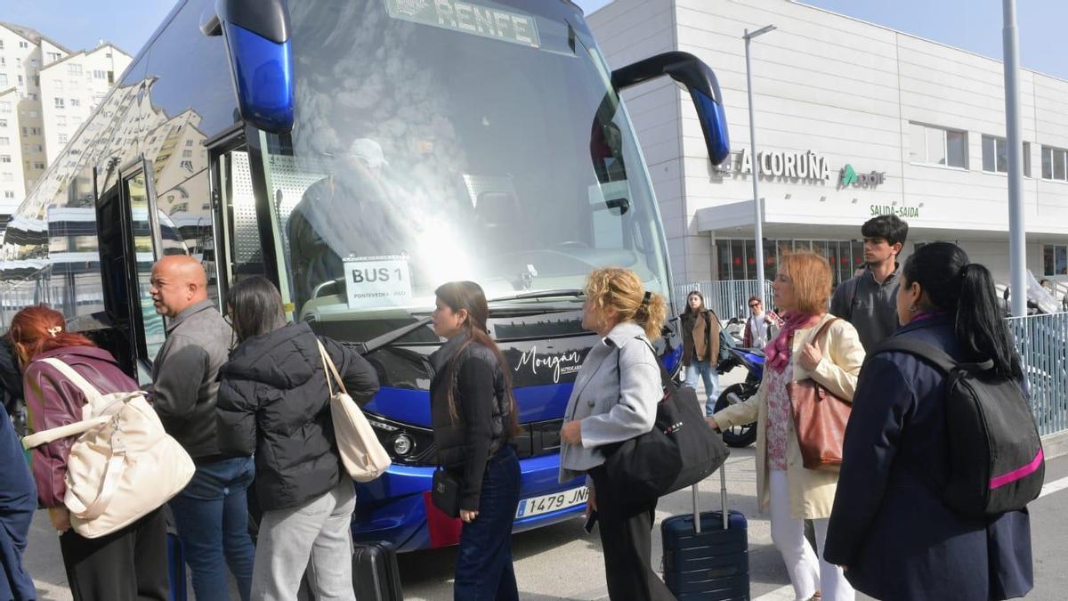 El bus alternativo con destino a Vigo en la estación de trenes de A Coruña / CARLOS PARDELLAS
