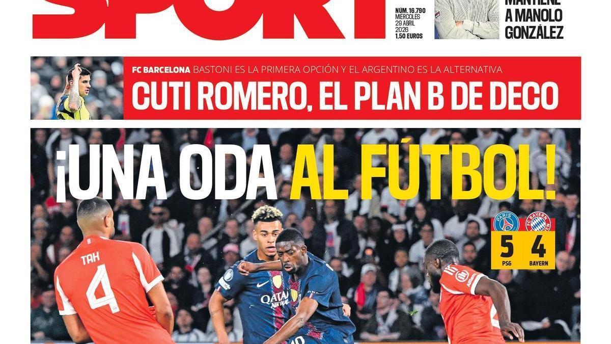 Esta es la portada de SPORT de hoy miércoles, 29 de abril de 2026 / SPORT.es